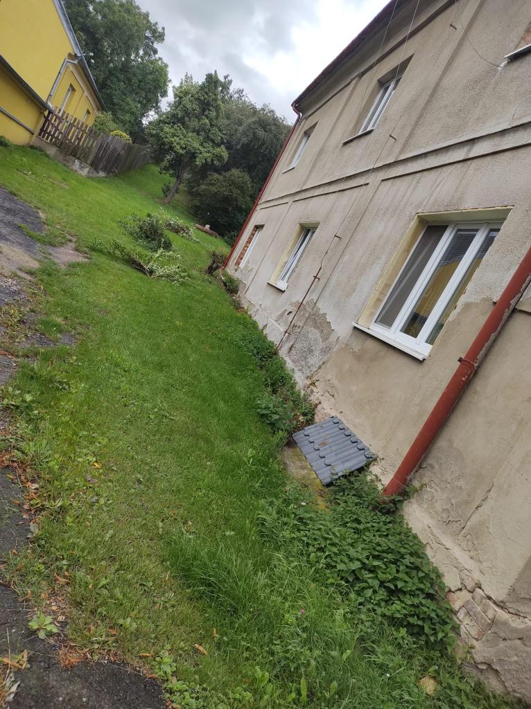 Čištění žlabu na č.p. 40 a úprava zeleně