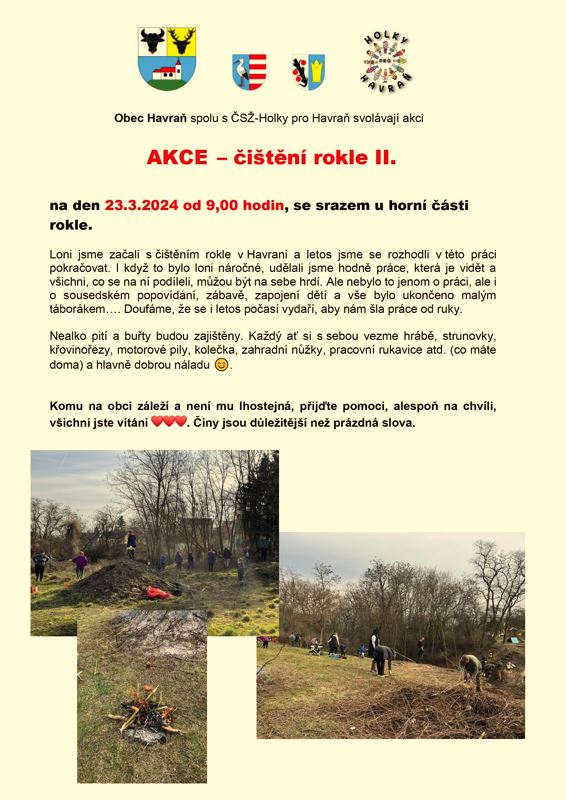 Akce - čištění rokle II. proběhlo opět v hojném počtu lidí a přátel obce Havraň. Odvedlo se kus práce. Všichni jste byli úžasní.